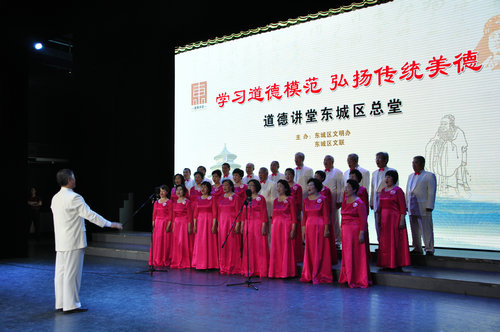 5月9日下午,由区文明办、区文联共同主办的主题为“学习道德模范,弘扬传统美德”的东城区道德讲堂总堂文艺活动在区风尚剧场举行。区委常委、副区长汤钦飞出席活动,2014年“中国好人榜”身边好人任与鸿、安改芝和全区各街道、各系统的主管领导和区文明办、区文联,法院、税务、公安民警、部队官兵、公共文明引导员和社区居民等各界代表共380余人参加了活动。