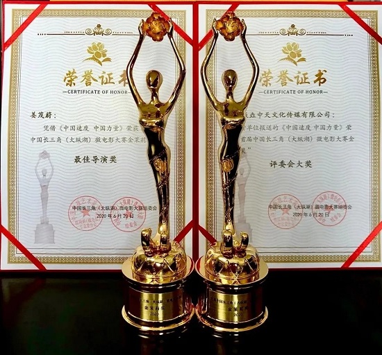 8月22日晚,首届中国长三角(盐城大纵湖)微电影大赛“金茉莉奖”颁奖典礼盛大开幕。众多影视导演、演员和文学、艺术界知名人士出席,共同揭晓了包括短视频作品奖、微电影作品奖和最佳男女主角奖在内的19个奖项。东城区文联艺术家顾问姜茂蔚执导的抗疫主题微电影——《中国速度 中国力量》从大赛征集的一千余部作品中脱颖而出,荣获“评委会大奖”和“最佳导演奖”双项大奖。