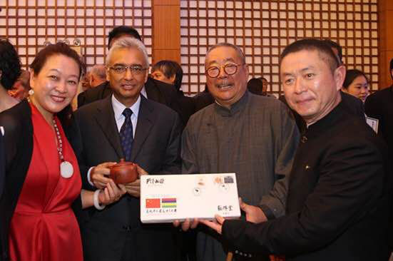 4月19日晚,中国驻毛里求斯大使馆举办纪念邮票首日封揭幕仪式,毛里求斯共和国总统法基姆、总理普拉温德、第一副总理克兰达维卢出席了揭幕仪式,一同出席的还有外长卢切米那赖社、内阁十余位部长、中国政府非洲事务特别代表许镜湖大使、中国驻毛里求斯大使李立、毛里求斯驻中国大使李淼光等。此外,中国前驻毛大使王富元、高玉琛、中毛商界文化界友好人士、外国驻毛使节及华侨华人、中资机构代表等出席,参与人数近千人。