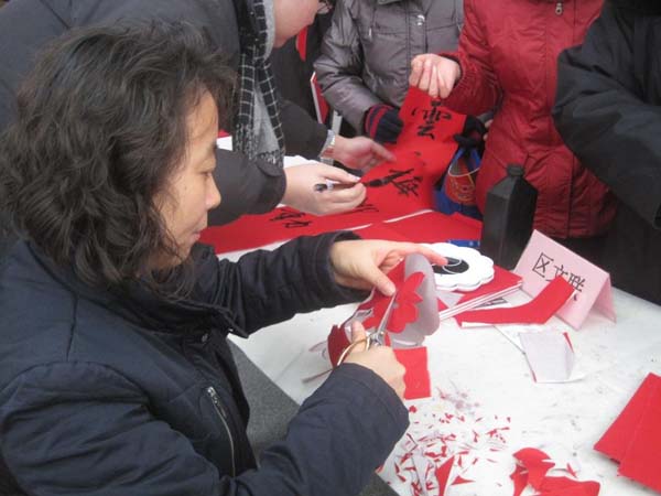 今年的“三下乡”活动内容丰富、形式多样,从百姓的实际需求出发,写春联、剪窗花、送图书及文艺演出等,构成了一道道文化大餐。朝阳区文联邀请了朝阳区书法家协会6位书法家和朝阳区民间文艺家协会3位剪纸艺术家现场书写春联600余幅、制作剪纸800余张赠送给现场的百姓,寄予了节日的祝福,为百姓的节日生活注满了浓郁的文化气息,受到百姓热烈欢迎。
