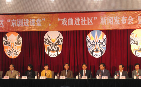 4月16日上午,丰台区“京剧进课堂”、“戏曲进社区”新闻发布会暨启动仪式在赵登禹学校举行。中国戏曲学院代表分别与丰台区教委、丰台区文化委签署了《联合开展中小学京剧进课堂工作意向书》和《联合开展戏曲进社区工作意向书》。会上,还为丰台区的“京剧进课堂”20所试点校、“戏曲进社区”12个试点单位颁牌。