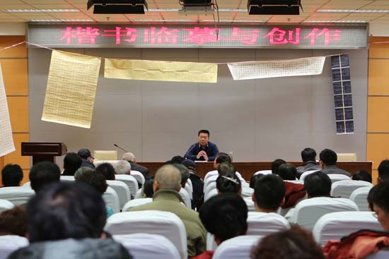 3月24日,中国书协楷书委员会委员、北京书协理事、丰台区书协副主席张维忠在丰台区图书馆报告厅作了题为“楷书的临摹与创作”的专题讲座。近三个小时的讲座中,张维忠主要围绕中国书坛楷书创作现状,结合中国书协首届楷书展征稿,认真剖析了什么是楷书,楷书的分类,楷书的用纸、用笔、用墨,以及参加楷书展的注意事项等问题,逐一点评了会员们的作品并提出中肯的修改意见。100余位区书协会员和书法爱好者聆听了此次针对性、时效性很强的名家讲座,受益良多、一致好评。丰台区书协主席路世明、区书协驻会副主席兼秘书长袁永齐到会主持讲座,并和会员们一起进行学习交流。
