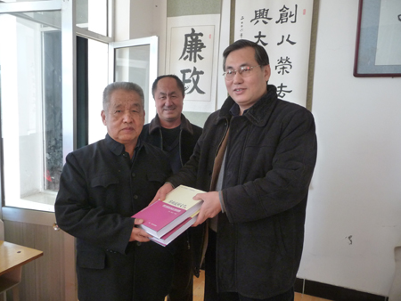 史长义主席向《绿港文学社》杂志社王克臣主编赠书