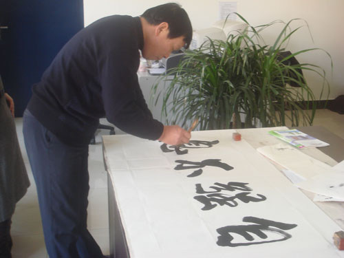 继去年在阎村镇南梨园中学举办系列书画活动之后,3月1日,房山区美术书法家协会又将活动办进了良乡镇的官道中学,全面铺开了文艺绿化工程。