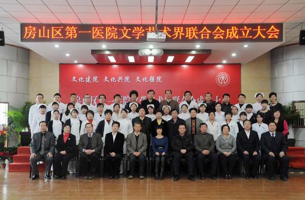 为深入贯彻落实党的十八精神,促进和丰富广大医务工作者的文化生活,推动医院文化建设跨越式发展,今年,在区文联的指导下,房山第一医院结合医院工作特点,秉承“文化建院、文化兴院、文化强院”的宗旨,成立文联分会,下设文学创作、书画、摄影、音乐舞蹈四个艺术学会,拥有会员350名。拟通过文联组织,培养一支有理想、有抱负的职工文艺队伍,创作出一批反映医院特色汇聚医者理念的优秀作品,引领职工实践好敬业乐业、尊重科学、拼搏进取的医院精神。