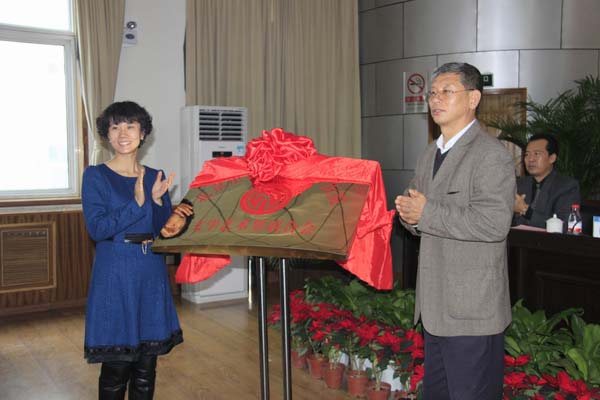 北京市文联党组副书记王德新和房山区副区长曹蕾为文联房医分会揭牌