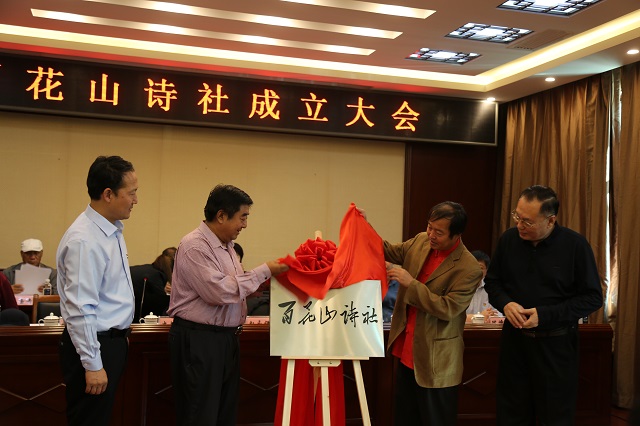 会上,史家营当地乡贤张文战当选百花山诗社首任社长,市、区、乡领导共同为百花山诗社揭牌,北京诗词学会副会长张力夫为诗社赠书并作《秋分日贺百花山诗社》诗词贺诗社成立。区文联主席史长义当选名誉社长,并作《百瑞谷赋》以赠诗社。他对北京诗词学会的鼎力支持表示感谢,对诗社成立表示真诚祝愿。他说,诗社的成立体现了史家营乡党委、政府“三乡战略”的高层部署。同时,对诗社今后的建设工作提出四点要求:一是坚持党的领导,把牢政治方向;二是团结队伍、凝聚人心;三是眼界朝外、扩大格局;四是文旅相融,助推发展。北京诗词学会常务副会长褚宝增在讲话中对百花山诗社的成立表示祝贺,希望史家营乡充分利用得天独厚的条件,在“文化之乡”上深挖深掘,产生重大影响,全力争创“中华诗词之乡”。