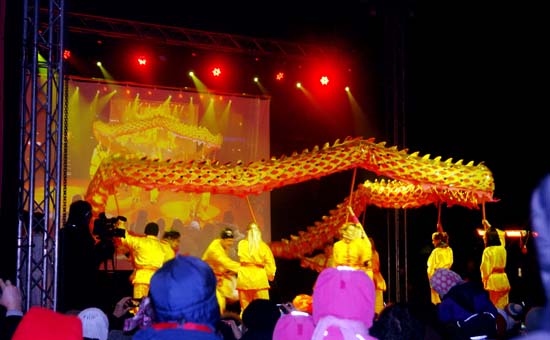 中国龙舞到观众中