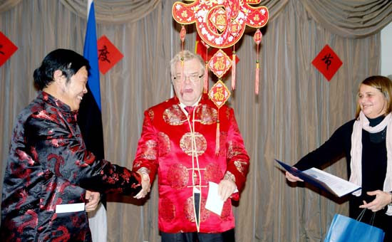 2月5日17:00,第二届庆祝中国春节活动在爱沙尼亚首都塔林市自由广场举行。驻爱沙尼亚大使黄忠坡和塔林市长萨维萨尔分别致欢迎辞和开幕辞并为中国龙点睛。