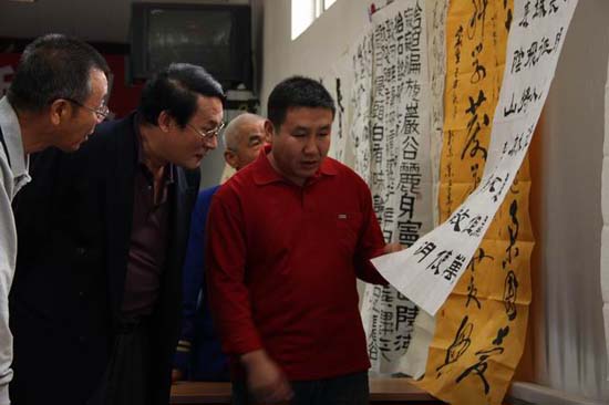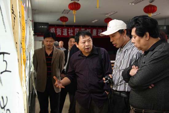 为备战第四届北京BTV书法电视大奖赛,通州书法家协会副主席祁四龙、秘书长黄添喜及副秘书长张振峰、李超然等一行十余人于9月20日上午来到通州玉桥社区活动站,与部分拟投稿参加电视大奖赛的书协会员及该社区书法爱好者一起,就参加电视大奖赛应该注意的问题进行了探讨。曾在北京书协或中国书协主办的展览中取得过较好成绩的书法家对大家准备投稿的每一件参赛作品从章法、笔法乃至印泥的使用都进行了认真的点评,并提出了改进建议。通过这次活动,大家受益匪浅,一些信心不足的同志通过这次活动增强了信心。他们表示:一定要对自己的作品进行精心的准备,并保持良好的心态,通过参加电视大奖赛来提高学习书法的乐趣和信心。