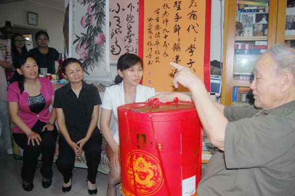 2013年6月28日上午,区委常委、宣传部长王杰群、副区长李亚兰、区广电中心王志刚主任、区文联樊淑玲主席等领导一行到通州区第一届书法家协会主席,90岁高龄的老书法艺术家刘放,中国美术家协会会员、美术家彭士强,老文艺工作者山建宁、刘祥等12位老党员、老艺术家、老文艺工作者家中进行走访慰问,并送去了鲜花和慰问金。