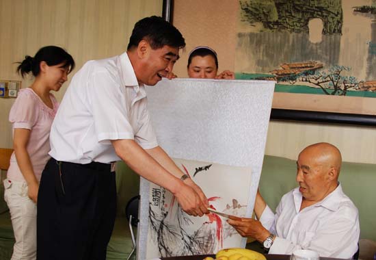 6月21日,由昌平区委组织部、昌平区委宣传部、昌平文联三方共同举办的“为建国前入党的老党员赠送书画作品”活动在昌平区兴寿镇桃林村村委会举行赠送仪式。