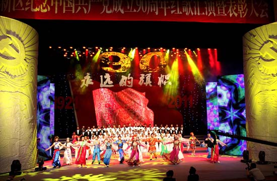 6月27日,《永远的旗帜》放歌新区--"为党旗增辉、为新区添彩"庆祝建党90周年红歌汇演暨表彰大会在大兴剧院隆重举行。新区领导林克庆、张书领、高树旺、赵广义、王新等出席活动。