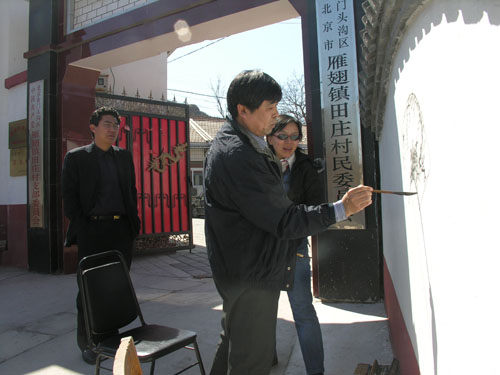 4月1日,门头沟区文联书法家协会副秘书长高路到雁翅镇田庄村装扮“文化墙”和“文化走廊”。经过实地考察、精心构思之后,高路在田庄村的“文化墙”上书写了毛主席诗词《沁园春·雪》,笔墨苍劲,气势恢宏;依“文化走廊”的波浪状走势,做了十二幅扇面画,内容涉及春夏秋冬、梅兰竹菊、福寿祝福语等内容,书画浓淡相宜、错落有致。“文化墙”和“文化走廊”成为田庄村又一“人文景观”,为该村的旅游产业发展注入新的活力。