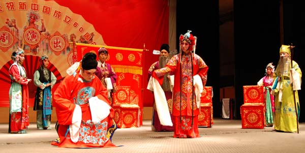 门头沟戏剧家协会的演员和乐队乐师们,经过长达半年的精心排练,为大家奉上了一场情浓、舞美、戏酣的视听盛宴,演出取得了圆满成功,为新中国成立60周年献上一份艺术厚礼。