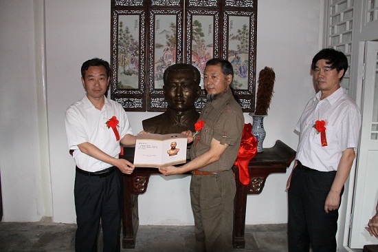 为了热烈庆祝中国共产党的90华诞,展现我区文艺家对党的赤胆忠心,6月23日,京西山区中共第一党支部旧址教育基地隆重举行曹长旭先生捐赠崔显芳烈士雕像仪式,以雕塑艺术见证我区文艺家对崔显芳烈士的真诚敬仰和无限爱戴,对伟大的中国共产党的无限热爱和无限忠诚。门头沟区雁翅镇镇长杜军,镇党委副书记张书军,门头沟区文联党组书记、常务副主席孙永春,副主席兼秘书长陈晓红出席仪式。崔显芳烈士的孙女崔英云同志参加活动。