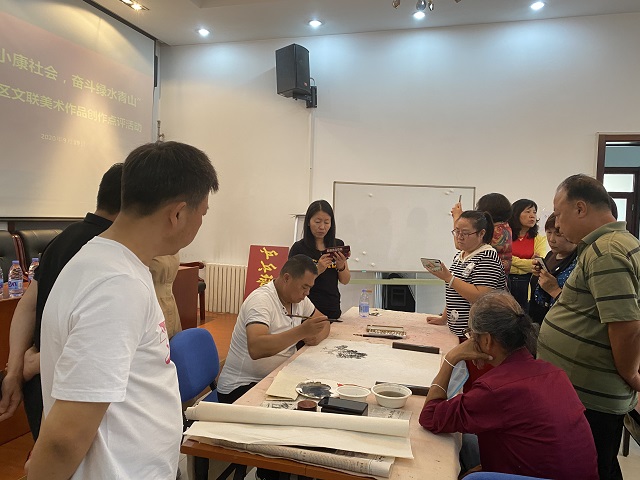 在全面建成小康社会收官之年,区文联计划开展“共享小康社会,奋斗绿水青山”全面建成小康社会书画摄影展暨第九届书法篆刻临帖作品展,用艺术形式展示全面建成小康社会的丰硕成果。为办好此次展览,9月19日下午,门头沟区文联美协在区委老干部局五层会议室开展了“共享小康社会,奋斗绿水青山”美术作品创作点评活动。