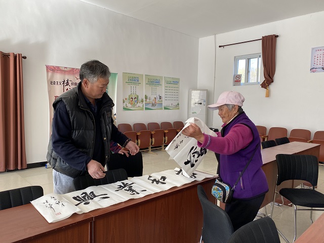 本次活动,艺术家们围绕“促文明,奔小康”主题为新村村民委员会及村民创作了“惟勤是路”“家和兴业”“节约粮食”“暗香”等书画作品60余幅。还特意为新村的文化建设宣传创作了“文化新村”“文旅兴区”等书法作品。活动中,很多80岁老人、退役军人家属都参加了此项活动,他们表示要将书画作品悬挂在家中,感受和学习书画作品蕴含的艺术魅力。