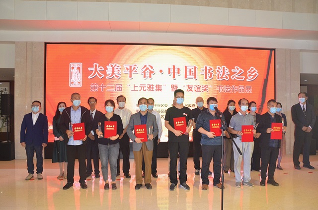 2020年9月27日,“大美平谷——中国书法之乡 第十二届‘上元雅集’暨‘友谊奖’书法作品展”在平谷区博物馆开幕。本届展览由平谷区委、平谷区人民政府主办,平谷区委宣传部、平谷区文联承办,平谷区文化和旅游局协办。原中国书协副主席胡抗美,中国书协副秘书长张陆一,平谷区委常委、宣传部长方建卿,平谷区副区长徐素芝,平谷区文联顾问、原平谷区人大常委会主任王振林,著名书法家、原平谷区书法家协会主席王友谊,平谷区委宣传部二级调研员王秋芬,平谷区文联党组书记、主席周彩伶,平谷区文化旅游局党组书记、局长孙立妹,平谷区文联党组副书记韩维权,平谷区文联副主席、平谷区书协主席刘建丰出席开幕仪式并观看展览。