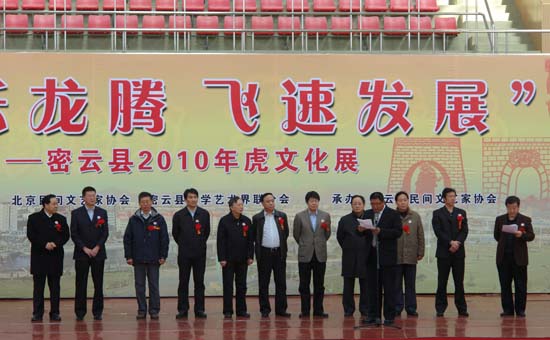 2010年11月21日,“虎跃龙腾、飞速发展”2010年密云县虎文化展在密云青少年宫隆重开幕。展览通过展板文字图片、工艺品实物和文艺节目三种形式展现了密云的虎文化元素。展线长达120米,内容丰富、底蕴深厚、作品精道,深深吸引了广大观众。在密云散见的虎文化元素很多,如:密云民间古建的虎头瓦当;老县城小南门的“倒吊一只虎”,曹家路独特的“五虎水门关”;石塘路独树一帜的花会“牛虎斗”,还有剪纸、绘画和绣品等充分展示了密云虎文化的悠久历史。