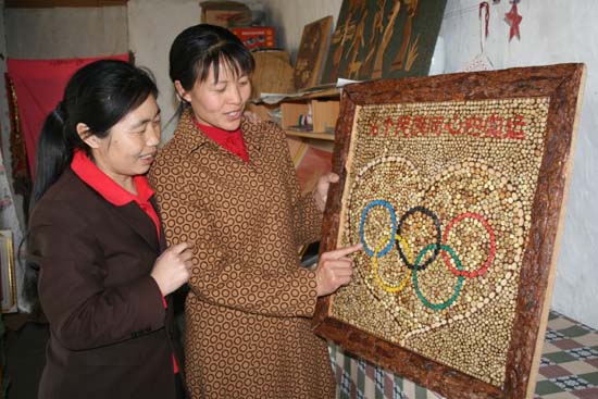 与此同时,镇妇联的领导帮她推销出了第一幅木节画作品,卖了660元。坚信“有一个人欣赏,就会有一百个人欣赏”的朱会萍开始带领姐妹们大量制作。“功夫不负有心人”,通过一年多的努力,2008年4月,“北京石城山缘手工艺品加工厂”注册成功,并申请了木节画国家专利。