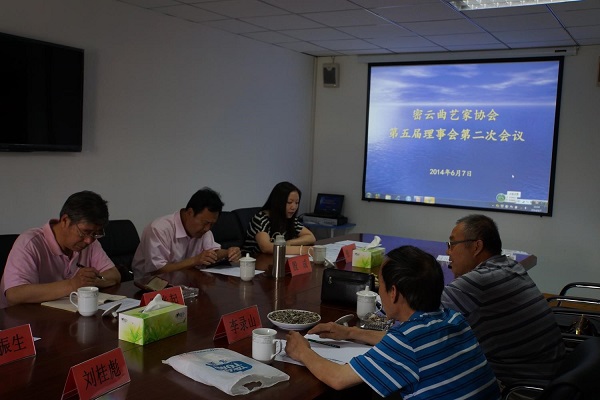 2014年6月7日上午,密云曲艺家协会在县文联五层会议室召开了第五届理事会第二次会议, 会议由曲协副秘书长程爽主持, 名誉主席陈光起等8人参加了会议。
