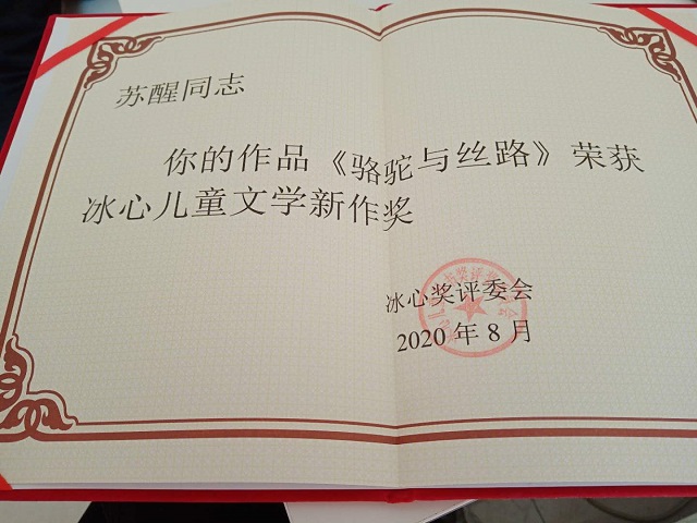 祖籍河南的苏醒近年来始终致力于童话文学作品创作,多篇童话作品在省市级文学期刊发表并获奖。《骆驼与丝路》描述了一匹在丝稠之路运送货物的骆驼,在看到美丽的丝绸、瓷器、茶叶后,产生了了解这个国度的想法,以及其在一路上的种种见闻,展示了中国在世界人民心目中的崇高地位。