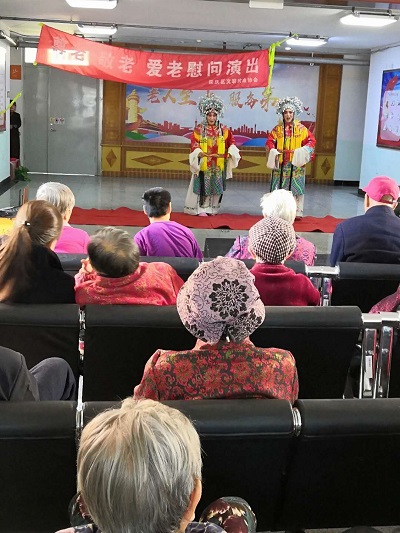 尊老、敬老是中华民族的传统美德,10月22日至10月24日,在重阳节到来之际,区文联组织区戏曲协会10名会员,来到区光荣院、张山营、永宁、香村营、夕阳红、瑞康缘等区内6家养老院,连续三天为养老院志愿演出6场折子戏共30个节目,为老人送去节日的问候和美好的祝愿。