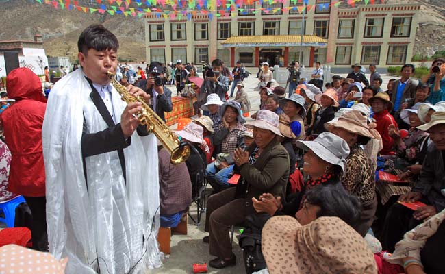 姜旭的管乐串烧赢得藏族观众争着献哈达。