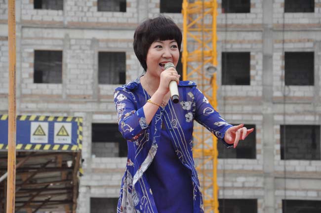 在京和友谊医院施工现场,喜剧演员良子的幽默演出让诸多外来务工人员开怀一笑。 王春梅 摄