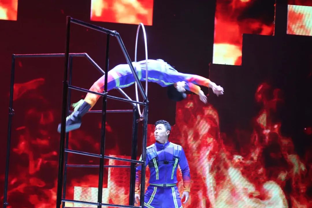 10月29日晚19:30,随着纱幕视频中对北京杂技艺术源头的娓娓道来引出还原天桥市井文化的情景表演《天桥映像》,“与时代共进 与祖国同行”——庆祝中国共产党成立100周年杂技展演在北京民族剧院拉开序幕。
