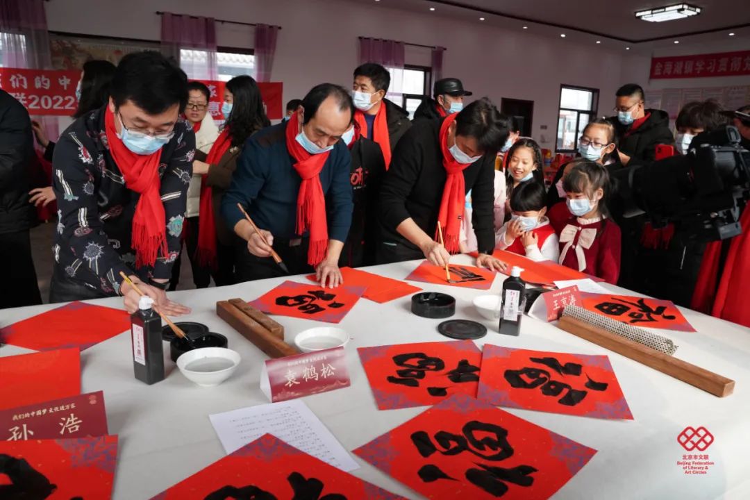 1月24日,由北京市文联、北京书法家协会主办的“我们的中国梦”——文化进万家首都书法家写春联、送“福”字志愿服务活动走进平谷区金海湖镇上宅村,为村里的老人、孩子、教师、学生、医生、机关干部代表以及留京过年的消防员送去新春的祝福。