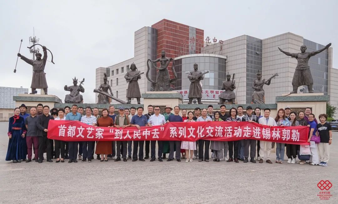 为深入学习贯彻习近平新时代中国特色社会主义思想和党的二十大精神,谱写京蒙东西部协作发展新篇章,7月31日,北京市文联组织文艺工作者赴内蒙古锡林郭勒盟,结合主题教育,开展“到人民中去”系列文化交流活动。中国文联国内联络部副主任、一级巡视员苗宏,北京市文联二级巡视员苏社钦,内蒙古文联党组成员、一级巡视员艺如乐图出席活动。北京曲协主席李伟建,中国书协理事、北京书协副主席王立志,中国美协会员罗瑞,中国摄协理事、北京摄协理事赵瑞,中国音乐金钟奖金奖获得者、中国东方歌舞团独唱演员于海洋,非遗古彩戏法传承人刘鹏等30余位文艺工作者参加了观摩交流、书画笔会、文艺演出等系列活动。