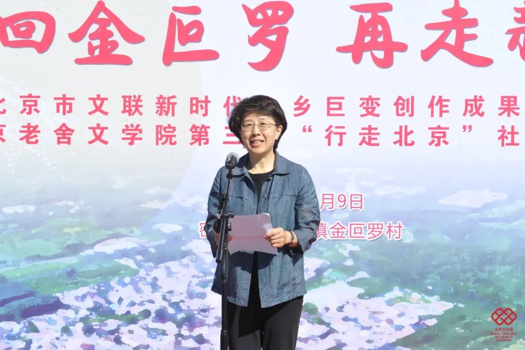 陈宁重点介绍了一年来市文联引领作家开展专题创作的成果,她表示,近年来,市文联聚焦新时代开展创作,“新时代山乡巨变”是其中鲜明的主线。本次活动以“重回金叵罗 再走新山乡”为主题,是市文联去年10月在密云区举办“捧起北京文学的金叵罗——用文学缝缀山乡巨变中的时代锦绣”主题创作研讨会的延伸。