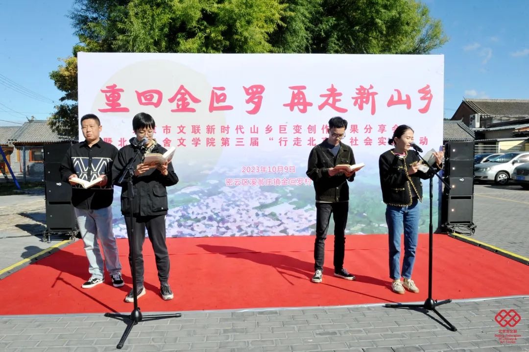 发言结束后,北京青年作家代表、金叵罗村村民、新农人代表、来自密云诵读基地的诵读者以及密云作家代表先后朗诵了乔叶长篇小说《宝水》片段、报告文学《“蝶变”的金叵罗》片段、散文集《金叵罗》片段,以及密云区作协新山乡巨变专题创作优秀作品。