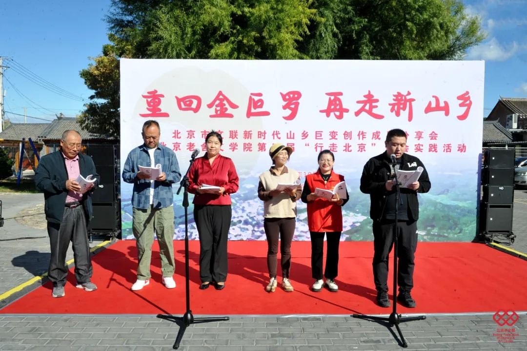 近日,北京市文联在密云区举办了“重回金叵罗 再走新山乡——北京市文联‘新时代山乡巨变创作成果分享会’暨第三届老舍文学院‘行走北京’社会实践活动”。10月9日,创作成果分享会在密云区溪翁庄镇金叵罗村村委会前广场举行。北京市文联党组书记、常务副主席陈宁,北京市文联一级巡视员田鹏,密云区委常委、宣传部部长李健,北京作协驻会副主席乔叶,作家出版社编审、评论家兴安,北京文学期刊中心副主任张颐雯,北京老舍文学院副院长周敏,密云区文联副主席张金月,溪翁庄镇党委书记兰天,石城镇党委书记周荪文等相关领导出席了会议,北京青年作家代表参加活动。会议由田鹏主持。