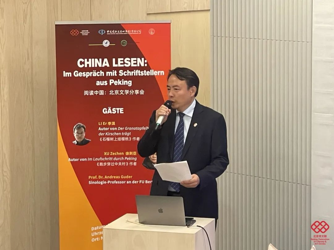 10月20日,由北京市文联主办,中国图书进出口(集团)有限公司、北京老舍文学院、德国柏林自由大学孔子学院和汉学系联合承办的“阅读中国——北京文学分享会”在德国柏林蔚来中心成功举办。北京市文联一级巡视员田鹏,作家李洱、徐则臣、乔叶、周晓枫、周敏等市文联作家代表团成员,与德国自由大学汉学系教授顾安达、《北上》德国译者丹尼尔、译者穆岸凝以及当地读者等近80人参加。活动由德国自由大学孔子学院中方院长潘璐主持。