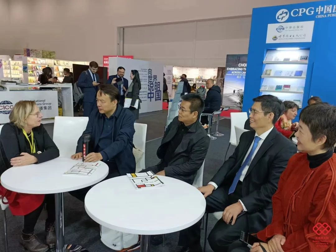 分享会前一天,北京市文联作家代表团走访第75届法兰克福书展参加相关活动,与书展副总裁柯乐迪、“北京市文联优秀文学作品翻译推广工程”版权合作方代表等商谈,大家表示要进一步加强合作交流,为加大力度推广北京作家作品而努力。