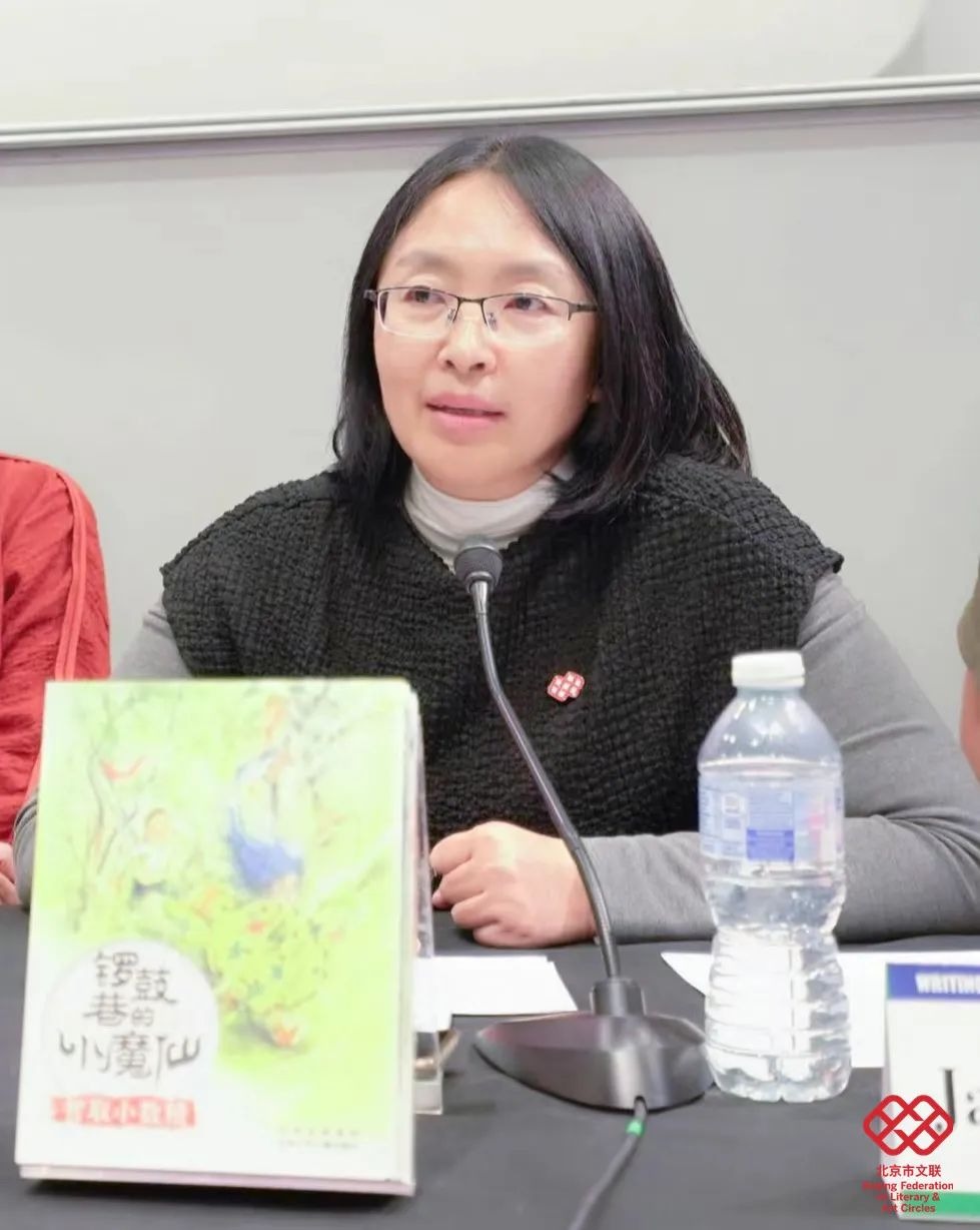 周敏以创作《锣鼓巷的小魔仙》系列作品,以及E.B.怀特先生作品《夏洛的网》为例,重点对儿童文学创作中如何从现实生活取材、加工进行了分析和阐释。她表示:在故事构建过程中,并不一定要创造一个完全虚幻的陌生世界,从现实生活当中取材,进行深度加工,对儿童文学创作的益处颇多。在创作《锣鼓巷的小魔仙》过程中,她引入了北京胡同、历史古迹、中国古籍等文化元素,极大地拉近了与读者的距离,甚至故事发生的原型地也成为了网红打卡地。由此,周敏提出,儿童文学作家应当时刻提醒自己是“在为小朋友们写作”,要学会基于读者的特殊性,通过语言、人物形象、故事情节和主题呈现方面的设计,达成与少年儿童理解力相匹配的、高趣味性表达。最终,创造出一个现实与幻想相互交融的美丽世界。