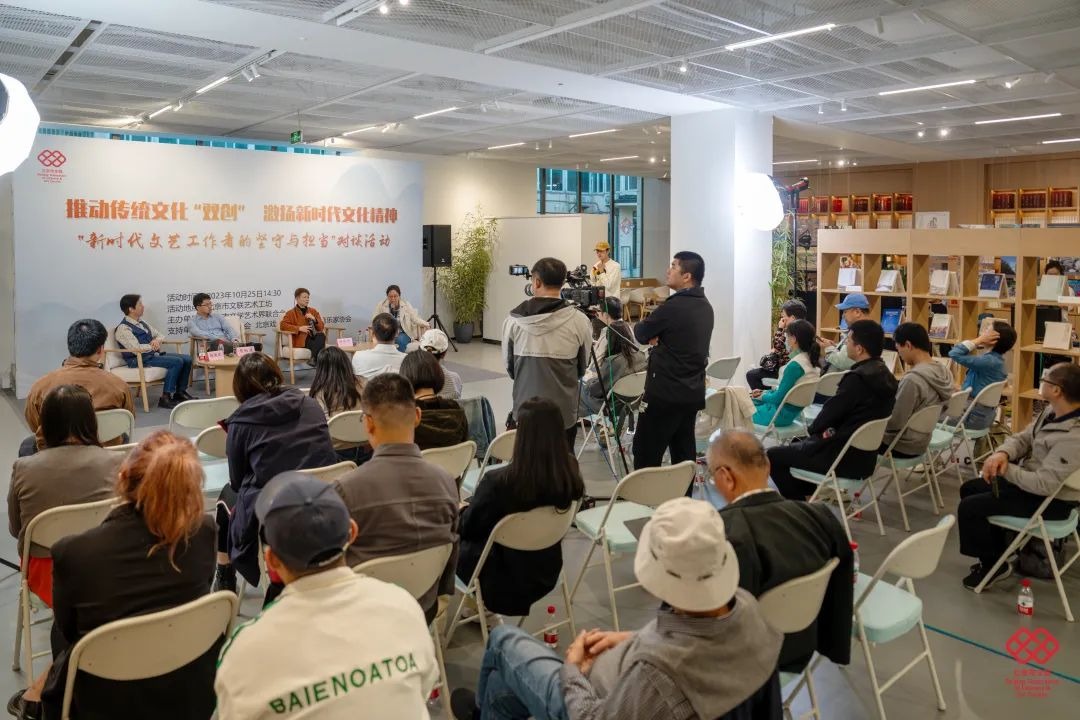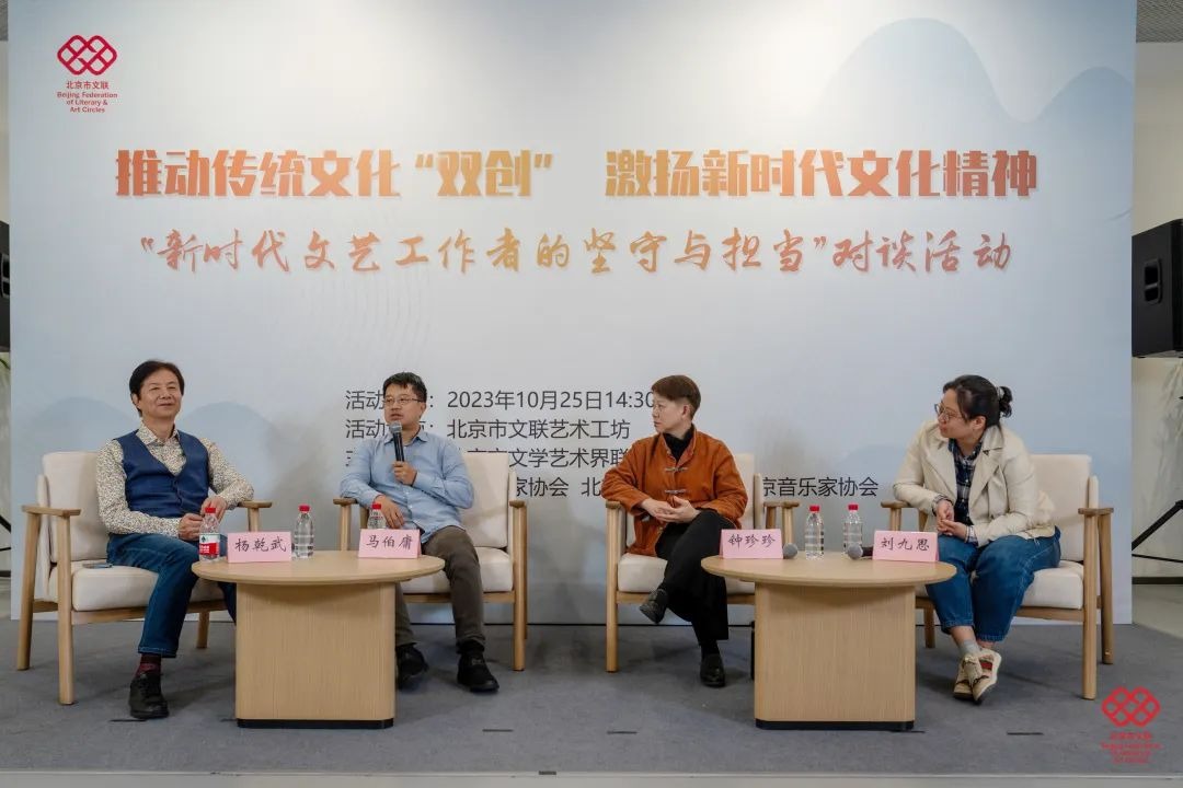 10月25日,“新时代文艺工作者的坚守与担当”系列对谈活动的第二场在北京市文联艺术工坊举办。本次活动是首都文艺界职业道德和行风建设系列活动的重要部分,由北京市文联主办,北京作家协会、北京戏剧家协会、北京音乐家协会支持。中国网、北京日报京直播、新浪直播间、京艺苑视频号等直播平台进行了同步直播,点击量107.6万。