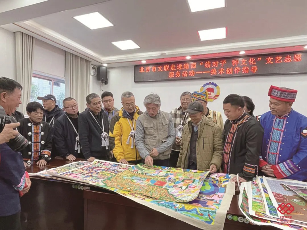 2019年11月20日,庆祝新中国成立70周年“中国梦·壮乡情”广西靖西壮族农民画北京展在中华世纪坛开幕。展览汇集的全是广西靖西壮族农民画家创作的130余件作品,分山水田园风光、民族民俗风情、脱贫攻坚决战三大板块,彰显了昂扬向上的精神风貌。这一美术展,圆了靖西美术界、特别是几代农民画家的夙愿,也成就了北京市文联对外帮扶援建工作中文艺志愿服务成果的第一次进京展览展示。