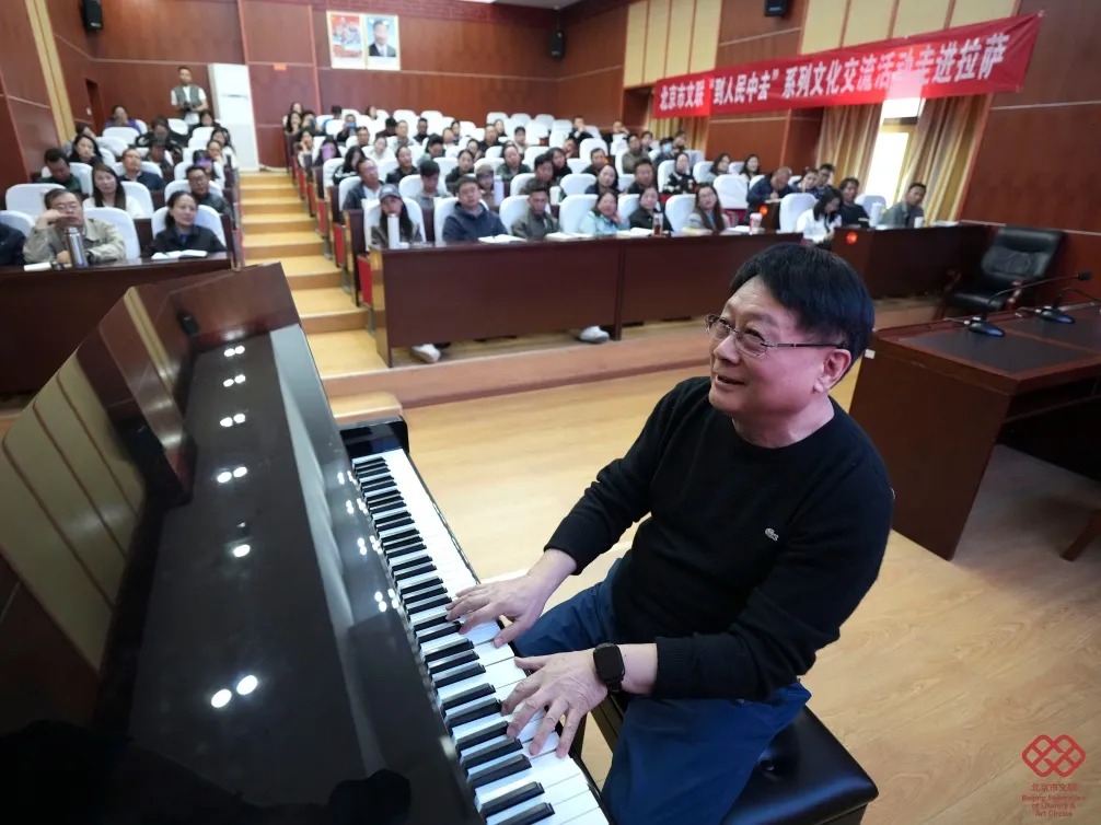 3场以歌声串联起党的百年征程的大思政课《歌声中的党史》在雪域高原倾情开讲。首都师范大学音乐学院教授雷达在北京援藏指挥部、拉萨市委党校、西藏自治区文联进行授课,通过一首首经典歌曲,将音乐与党史融汇一堂,听众们一次次跟随着雷教授的深情讲述,唱响红歌,砥砺初心。雷达教授表示:“希望能够通过交流活动,做好党的创新理论传播者、文化的翻译者、灵感的采集者、未来的播种者,推动音乐教育与时代发展相结合。”