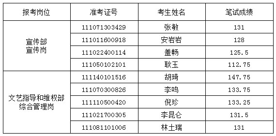 考生参加面试时,请携带本人身份证、网上打印的《公共科目笔试成绩通知书》。资格审查材料缺失人员,须于面试前将所缺材料交至市文联人事部。