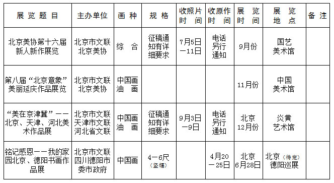 北京美术家协会展览部(北京市文联办公楼东侧二层212)收件地址:北京市西城区前门西大街95号
