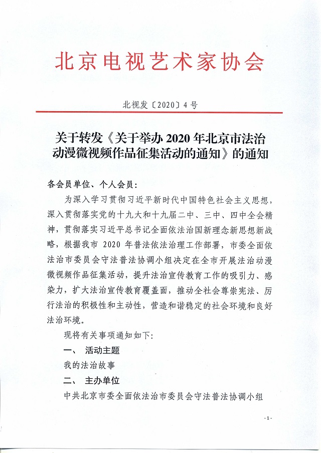 关于转发《关于举办2020年北京市法治动漫微视频作品征集活动的通知》的通知